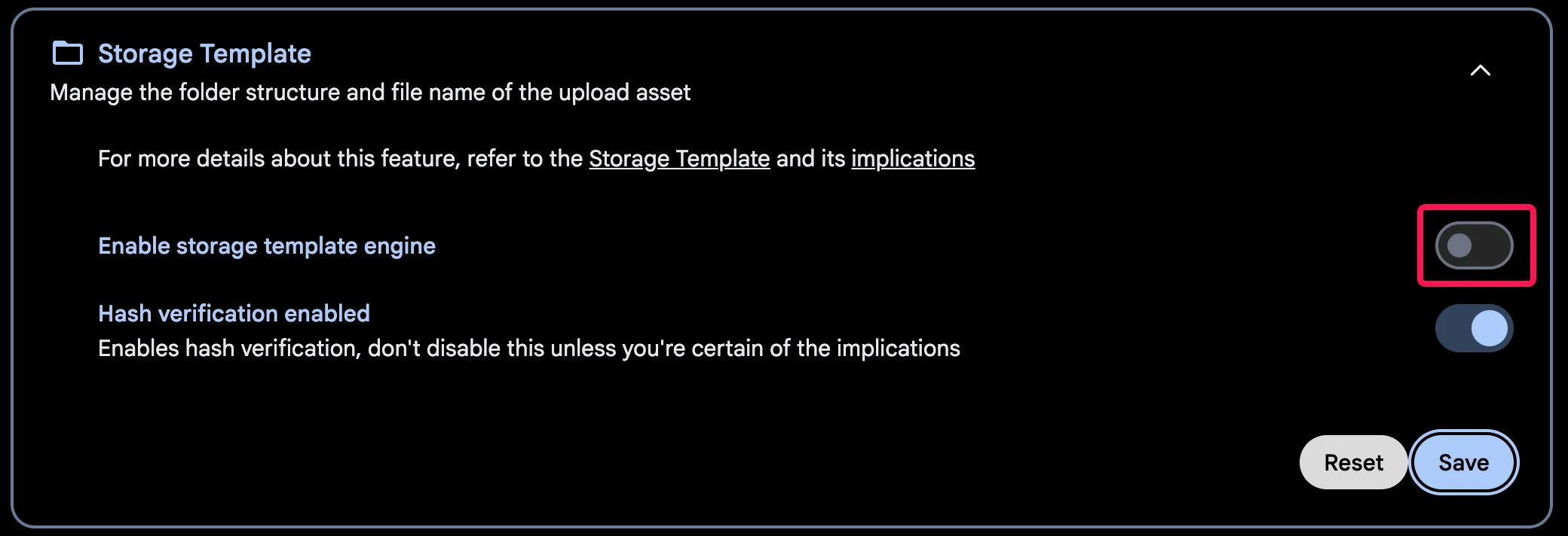 If you want to change the storage template during the initial setup, first enable the feature.
